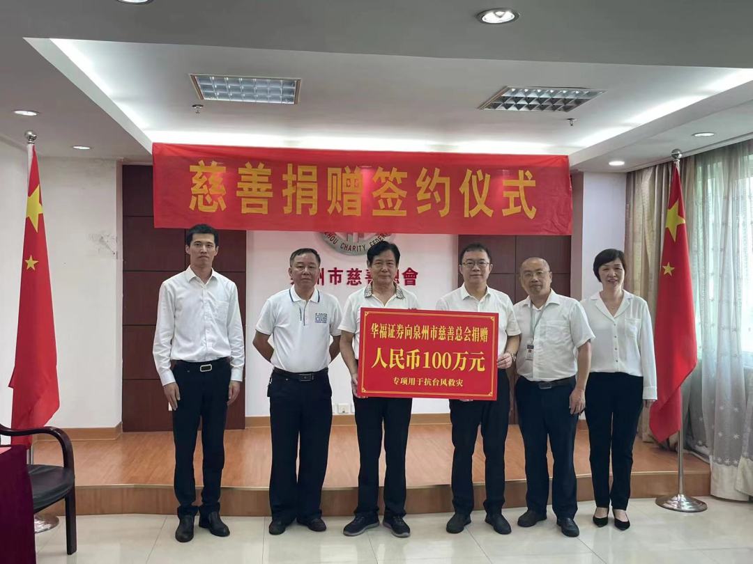 華福證券與泉州市慈善總會舉行捐贈簽約儀式 8月3日,華福證券主動擔(dān)當(dāng),積極履行社會責(zé)任,向泉州市慈善總會捐贈100萬元,用于支持泉州市救災(zāi)、救濟(jì)、重建等公益慈善項(xiàng)目。 |