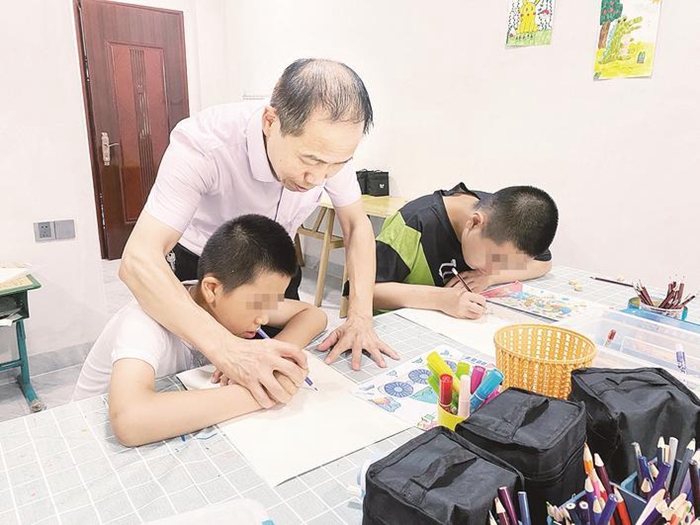 吳幼盛正在給特殊孩子們上美術(shù)課