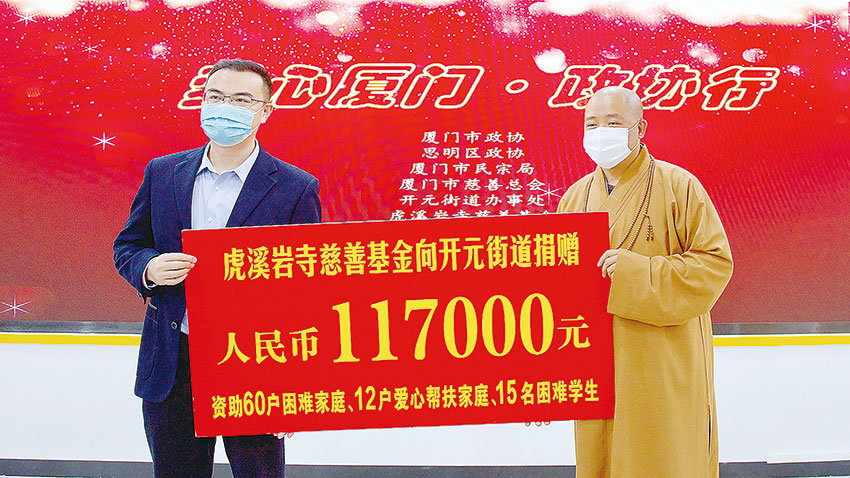 釋凈心一直把慈善精神作為一種追求來堅持,他堅信慈善是靠長年累月的堅持,只有“從小”“從心”“從我”做起,才能做強、做大、做長遠。早在2011年,釋凈心便以增強社會公眾的慈善意識為目標,弘揚中華民族樂善好施的傳統美德。他倡導成立了“廈門市慈善總會虎溪巖寺慈善基金”(廈門市佛教界在市慈善總會建立的第一個冠名基金),10年來進行了多次增資,始終確保捐贈公開透明,款物規范使用,截至2023年12月,基金總金額達到5000萬元,為做好慈善事業打牢了基礎。
