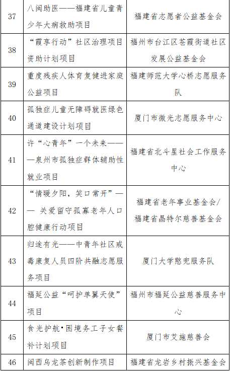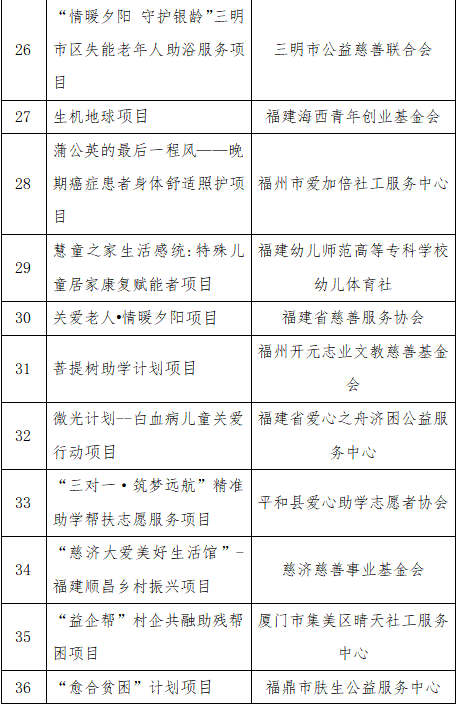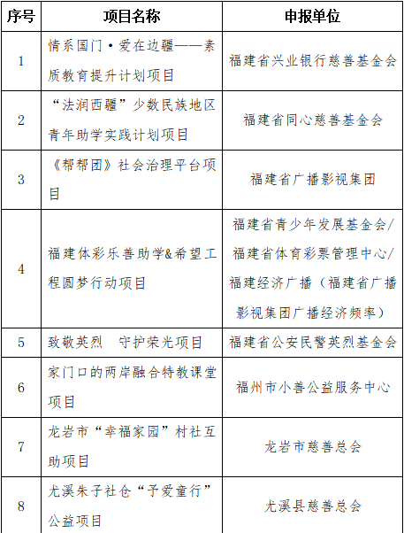 第七屆“善行八閩——公益慈善項目大賽”61個路演項目名單